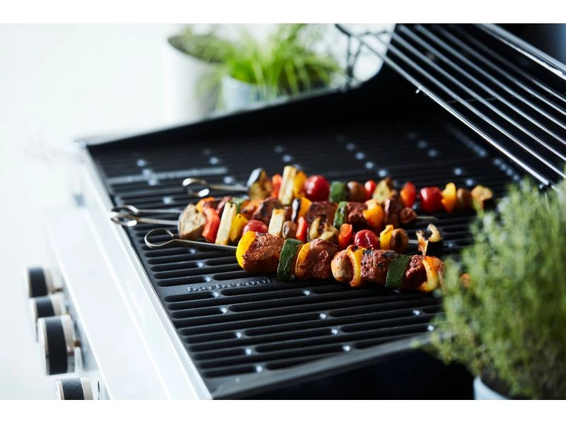 een afgerond uiteinde zodat ingrediënten niet van de spies glijden.