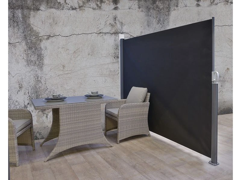 Het Oslo terras windscherm van Garden Impressions creëert zowel beschutting tegen de wind als privacy in de tuin. Het windscherm is verkrijgbaar in een carbon black frame met een donkergrijs scherm. Teven is het scherm oprolbaar. Een makkelijke manier om uit de wind van de zon te kunnen genieten!