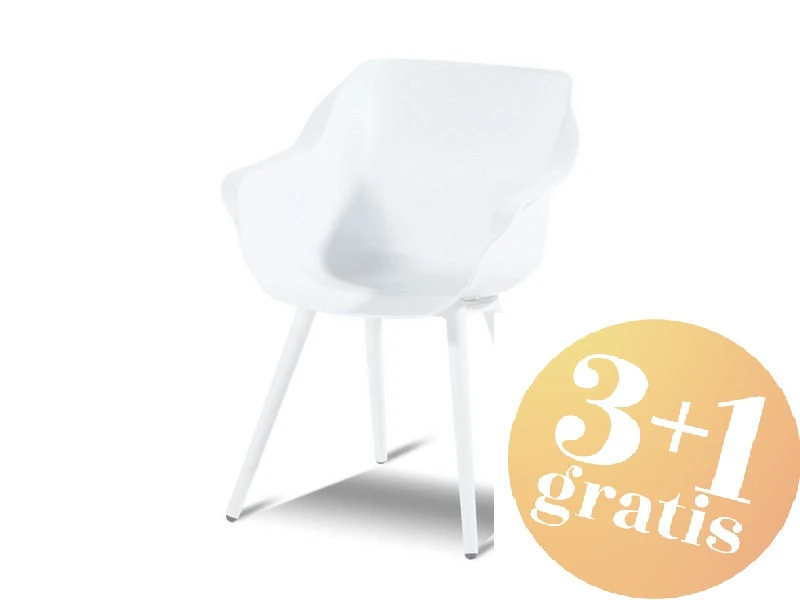 De Sophie Studio tuinstoel wit bestaat uit een aluminium onderstel met daarop een kuip van hoogwaardige kwaliteit kunststof. Dankzij het ontwerp van Curved Technology wordt er een extreem comfortabele zit ervaren.