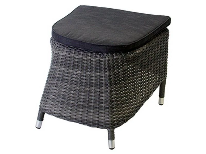 Deze handige voetenbank, wordt geleverd inclusief de waterafstotende kussen. Het frame is van aluminium, met daaromheen gevlochten een kunststof draad.