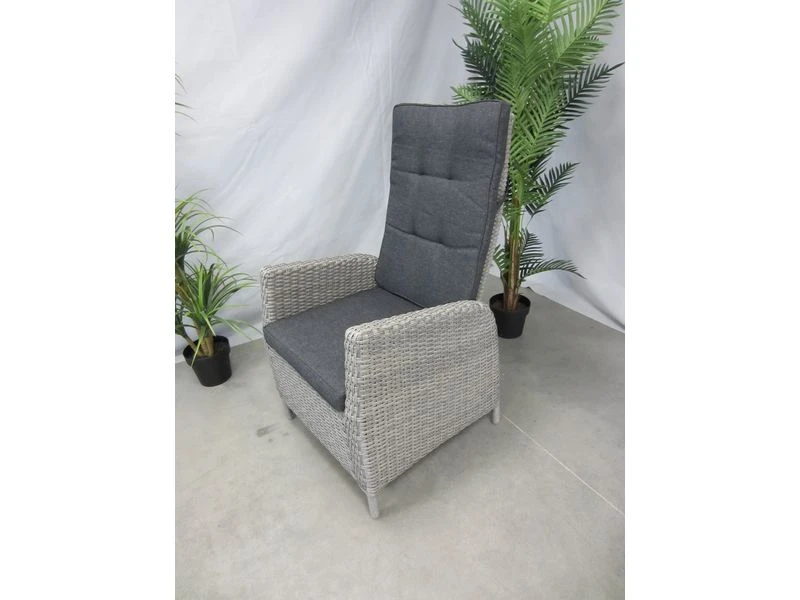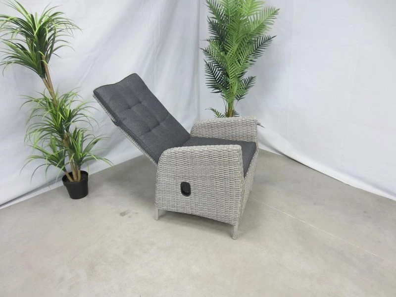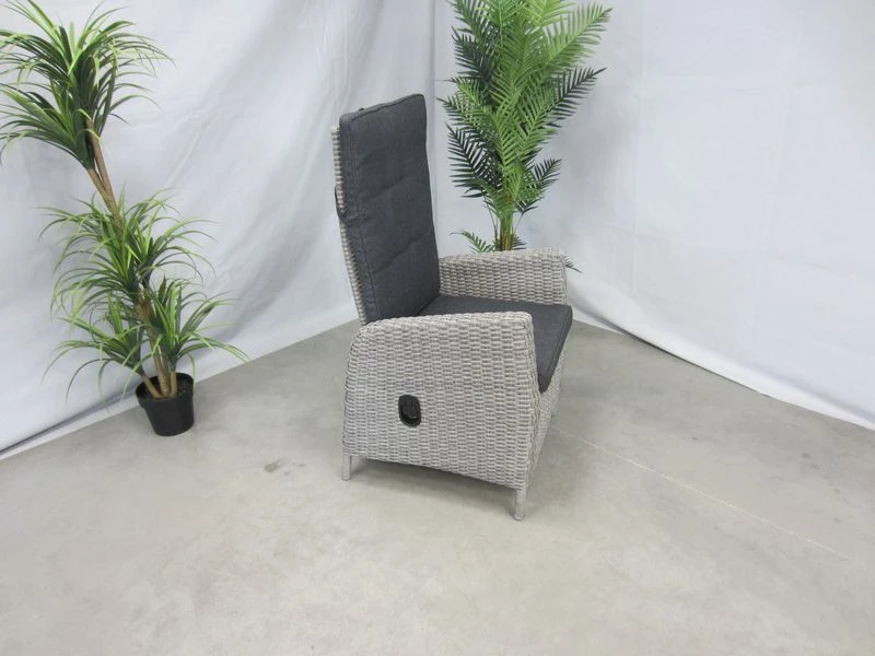 alu frame, 8mm dubbel rond wicker, met grijs dessin kussen, verstelbare rugleuning d.m.v. gasveer