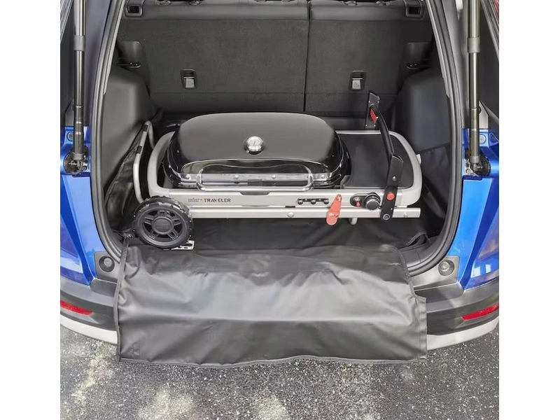 Bescherm de binnenkant van je voertuig tegen vet en viezigheid wanneer je de Weber Traveler-barbecue onderweg gebruikt. De hoes sluit nauw aan om de Weber Traveler zodat vet en viezigheid niet naar buiten kan komen en de andere items in je achterbak schoon blijven tijdens transport. De beschermende hoes is uitgevoerd met een handige opbergruimte voor je grillgereedschappen en je kunt hem compact opvouwen wanneer je hem niet gebruikt.