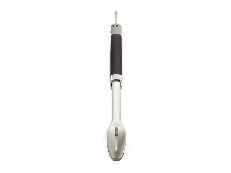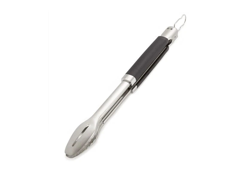 Met de Precision barbecuetang hanteer je probleemloos al je gerechten op de barbecue. De duurzame roestvrijstalen constructie en zachte handgreep geven je volledig en comfortabel de controle over je eten. De platte voorkant schuift eenvoudig onder je eten en je keert ook probleemloos delicate gerechten, zoals groente en vis, terwijl je met de precieze greep zware ribstukken probleemloos verplaatst. Met de handsfree vergrendeling open en sluit je de tang snel en eenvoudig en kun je hem compact opbergen.