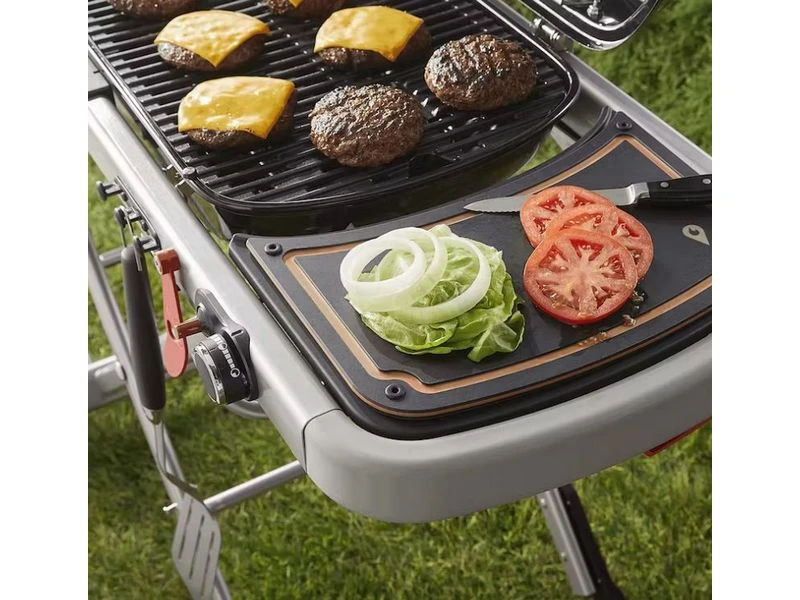 Bereid een maaltijd voor en serveer hem aan je gasten wanneer je onderweg barbecuet met de Weber Traveler-barbecue. De voorbereidings- en serveerplank past perfect op de zijtafel van de Weber Traveler en dient als voorbereidings- en serveerruimte die zowel veilig als stevig is. De omkeerbare snijplank heeft een duurzaam oppervlak dat is ontworpen voor snijden en hakken, en is voorzien van antislipgrepen om uitglijden tijdens het gebruik te voorkomen. Hij is ideaal voor het snijden van alles, van kip tot biefstuk, en is voorzien van brede groeven om overtollige sappen op te vangen.